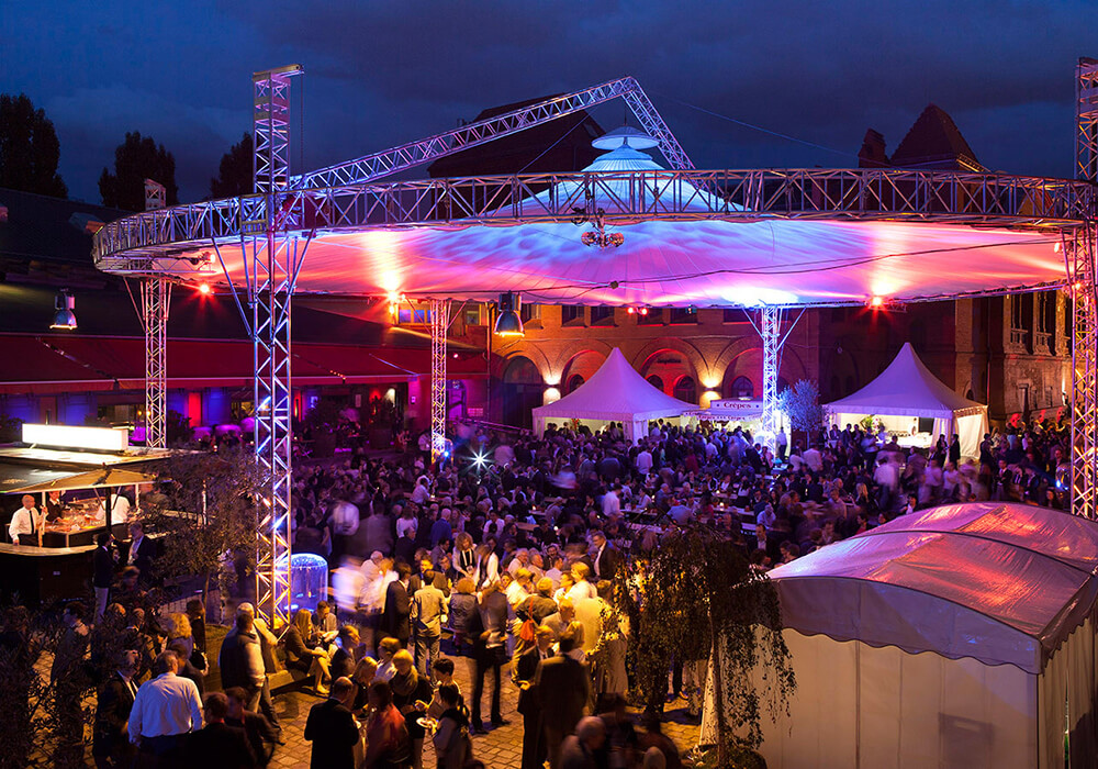 Durch die geschickte Kombination unserer verschiedenen Räume und Höfe ermöglichen wir in der warmen Jahreszeit geschlossene Veranstaltungen mit bis zu 4000 Personen.